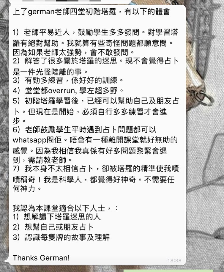 以上特備課程只提供給完成本店塔羅課程的學員報讀。