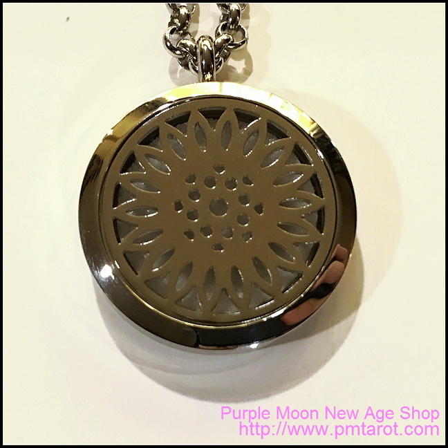 This oil locket has been especially crafted to allow you to wear your favorite fragrance around your neck, and leave a lingering experience with the subtle scent of your favorite oil. Saturate a blotter pad (included) with an magick oil or perfume of choice, and place it in the locket - portable aromatherapy! Stainless Steel locket.