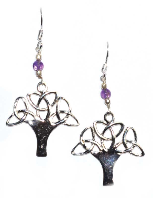 This item is required advance payment to order and estimate arrived in 3-6 weeks.Be reminded that everyday is a new opportunity for a fresh start wearing this Tree symbol earrings. Sterling silver with an Amethyst piece. Amethyst energy may assist you with happiness, calming fear, emotional storms, courage, love, peace, addiction, dreams, helps with insomnia and nightmares, and considered the "stone of peace". Sterling silver stamped .925 and made in India.