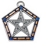 This item is required advance payment to order and estimate arrived in 3-6 weeks.Referring to the five alphas formed by the Pentagram, and originating from Ancient Greece this unusual Pentagram was first worn by the followers of Pythagoras as a secret sign by which they could recognise each other. Its beautiful symmetry lends itself to acts of personal empowerment for harmony and stability.