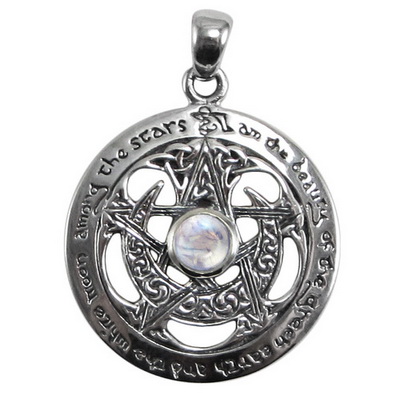 Sterling Silver Large Cut Out Moon Pentacle Pendant with Rainbow Moonstone