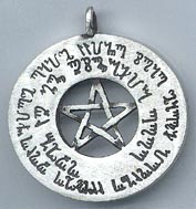 Increase Psychic Abilities Spell pendant, Pewter. Pentagram in center, wide circle exterior, with spell engraved "Fire rage, Wind soar, Earth ground, Water pour open up my psychic door", lead-free pewter.