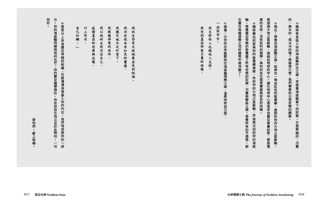 閱讀本書時,你可以循序漸進,從蓋亞到觀音,脈輪由下至上,順序清理與擴張你的內在能量系統。