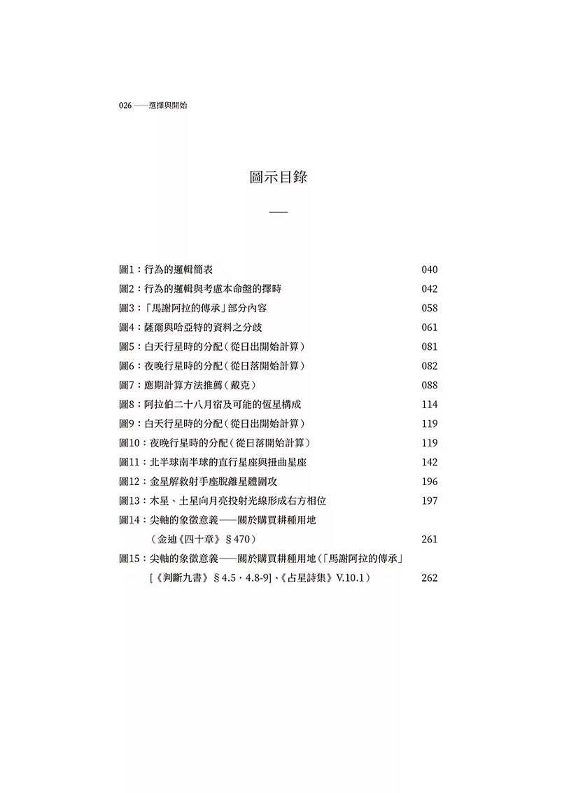 選擇吉時去開始一件事─ 即擇時,是古典占星學的一個重要分支。《選擇與開始》是迄今為止古 典擇時占星領域篇幅最長的一部現代語言著作集。本書由班傑明.戴克博士自中世紀拉丁文翻譯而 成,包含有關月宿與多種行星時的論述,以及三部最為重要的論述「完善的」擇時之古典著作─ 薩爾《擇日書》、伊朗尼《抉擇之書》、里賈爾《行星判斷技法》VII。本書還附有長篇緒論,甚至 分析了擇時占星涉及的倫理與哲學議題,這對於當代占星師來說亦是十分必要的。