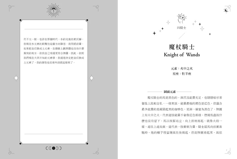 2.邏輯通了,靈感和直覺才能精準發揮本書分析牌圖的方式,融合星座、顏色、四大元素的特質,細細分析出牌義,所以你不僅能讀懂還能讀透!文中不時搭配實際案例幫助理解,還有解析說明愛情、事業、財運,方便讀者用於現實生活舉一反三,是塔羅興趣者、想重新打基礎的學習者必備書籍。
