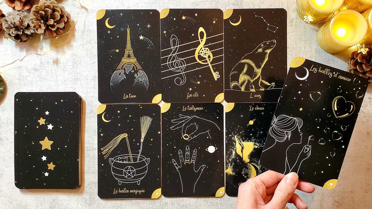 L'oracle contient le guide d'accompagnement et ses 38 cartes : les 36 symboles du Petit Lenormand selon la création originale de Mademoiselle Lenormand ainsi que 2 cartes supplémentaires : une carte yin et une carte yang. Chaque carte vous transmet sa signification pour une lecture traditionnelle. Elle vous dévoile également un message magique de reconnexion à votre pouvoir personnel.