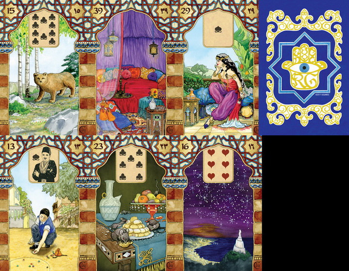 With a sprinkle of Lebanese folklore and a dash of 1001 Nights this exotic Lenormand deck reflects Rana George’s nostalgic views and personal memories of Lebanon. Rana also shares her considerable expertise in the art of reading with the Lenormand system. Every intricate detail of the Rana George Lenormand serves her mission of creating a deck unlike any other with its enticing artwork and insightful instruction. Both the box and the cards feature exquisite gold foil accents and the cards have a luxurious pearlized finish. This 42-card deck includes extra Man and Woman cards, for same-sex readings, as well as four additional cards that enhance the Lenormand experience: Spirit, Incense Burner, Bed and Market. In her 124-page guidebook Rana explains the cards’ contextual meanings in a reading and shares the personal associations that inspired each card. She also offers helpful instructions with multiple examples of actual questions explored in Lenormand readings.