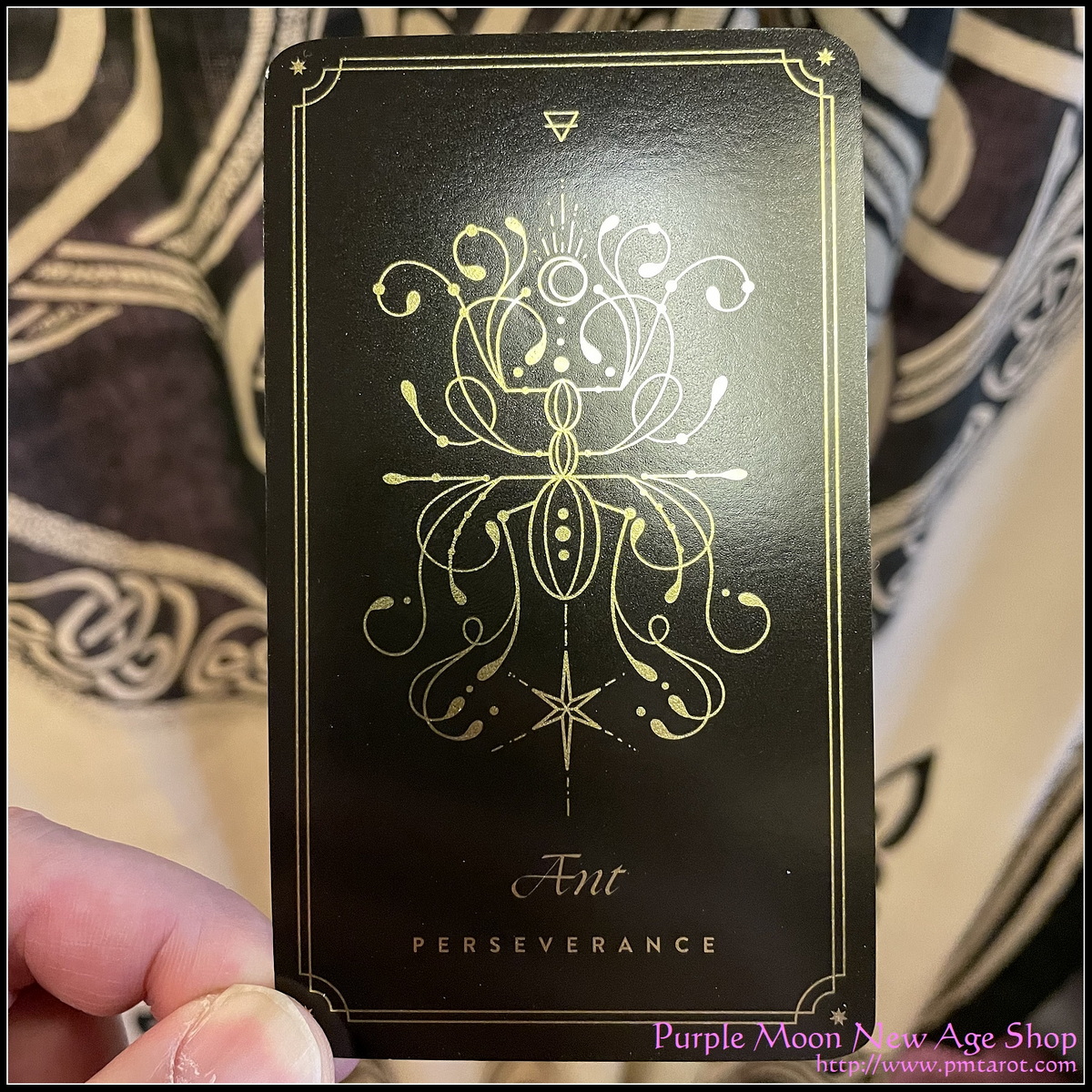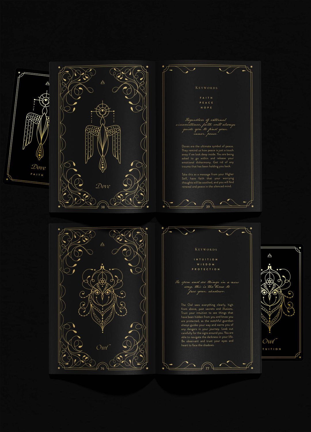 The deck comes in a soft box with gold foil and stamp seal, a velvet pouch and a card explanation booklet.