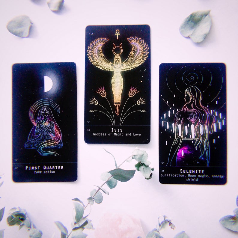the story behind it - On the night 13 of November I had a dream where I created a beautiful Oracle Deck inspired by Moon and meditation, this moment was so cool and inspiring I began lucid dreaming- I took the deck and examine all the details, I memorize the drawings, structure and cards titles. When I woke up in the morning I immediately took my sketchbook and written&sketch down everything. That same day I started working on the Deck, and took commitment with myself to do something everyday.