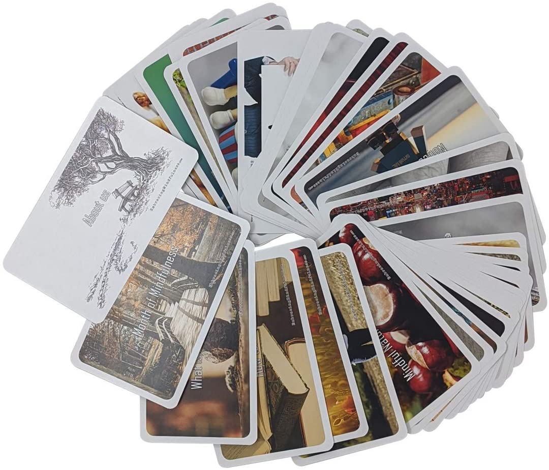 Neuro research has shown us our brain needs about 30 days to adjust to a habit change. This is the goal behind our "A Month of Mindfulness" products. 31 daily tasks designed to enhance your mindfulness. Printed on high quality postcard-sized paper with a related image on the reverse.
