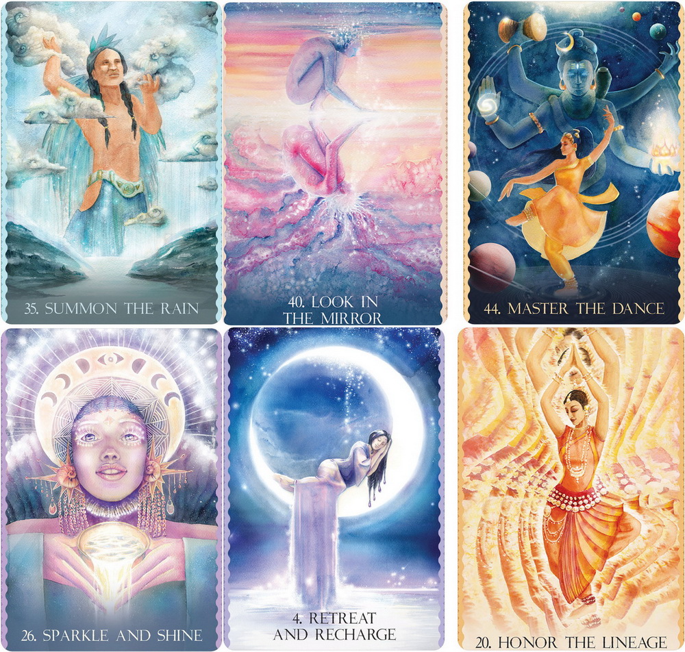 Dance has always been integral to the human experience. Principles of the Cosmic Dance are present in celebration, ritual, storytelling, philosophy, and more. The wisdom, connection, and inspiration that arise through sacred movement have found their way to you through the captivating artwork and empowering teachings of this dynamic oracle.