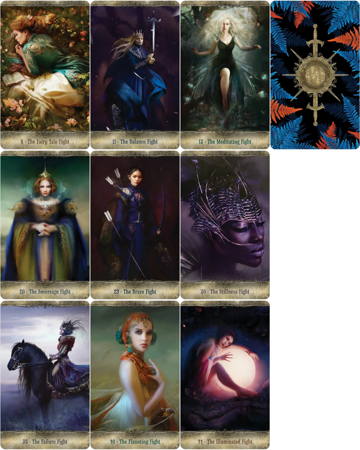 In the emerging realm of feminine empowerment, “fearless” means being present with your fear and allowing your soul’s sovereignty to accompany it step by step. Our competitive society would have us believe that fearlessness comes from domination and battle-worthy behavior. But the new order encourages power through cooperation. To fight like a girl is to let your fear cooperate with your love. Let your hesitation champion your courage. Discover your power by facing down your demons, doubts and insecurities with this 44-card deck full of inspirational messages by muse Angi Sullins and art by Bente Schlick. Fear less and brave more, woman. It’s time you fight like a girl. Set Includes 44 gold gilt-edged cards, 104-page illustrated guidebook and organza drawstring pouch.