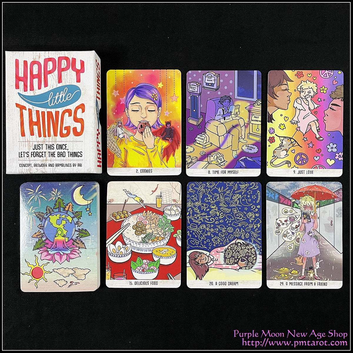 Every card of this joyful deck will bring a smile to your face. Bursting with vibrant colors and feel-good vibes, this inspirational card deck encourages you to forget the bad things and focus on living your best life.