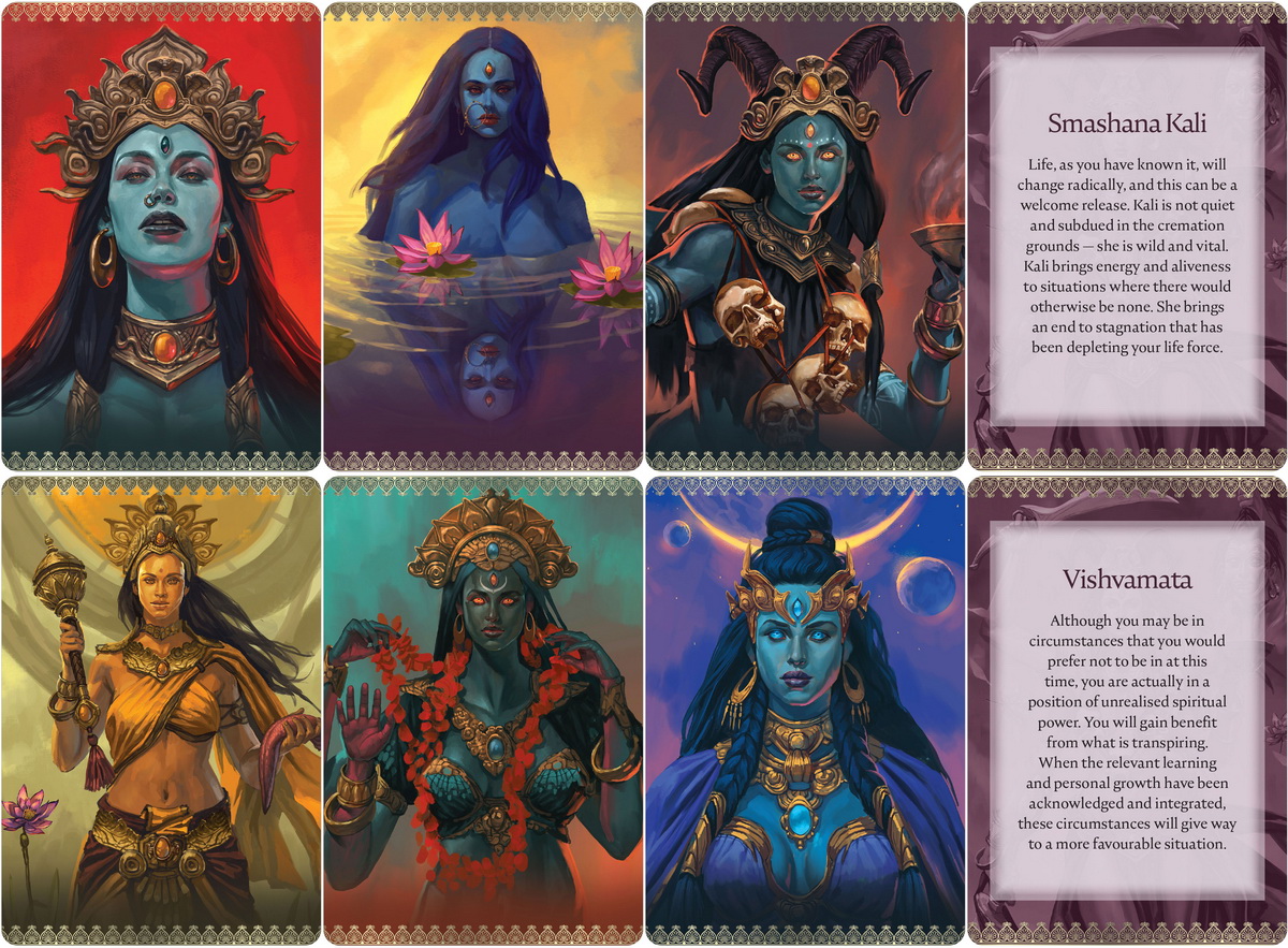 This item is required advance payment to order and estimate arrived in 3-4 weeks.Kali, the wild mother of divine grace, spiritual freedom and radical transformation, embraces your courageous soul. Some may fear her, but as you come to know her, take comfort in her ferocious compassion and unyielding wisdom. This unique oracle deck is an offering of guidance, clarity and healing that invokes unconditional love and divine blessings. Includes 44 cards with art on one side and meaning on the other, as well as an instruction card.