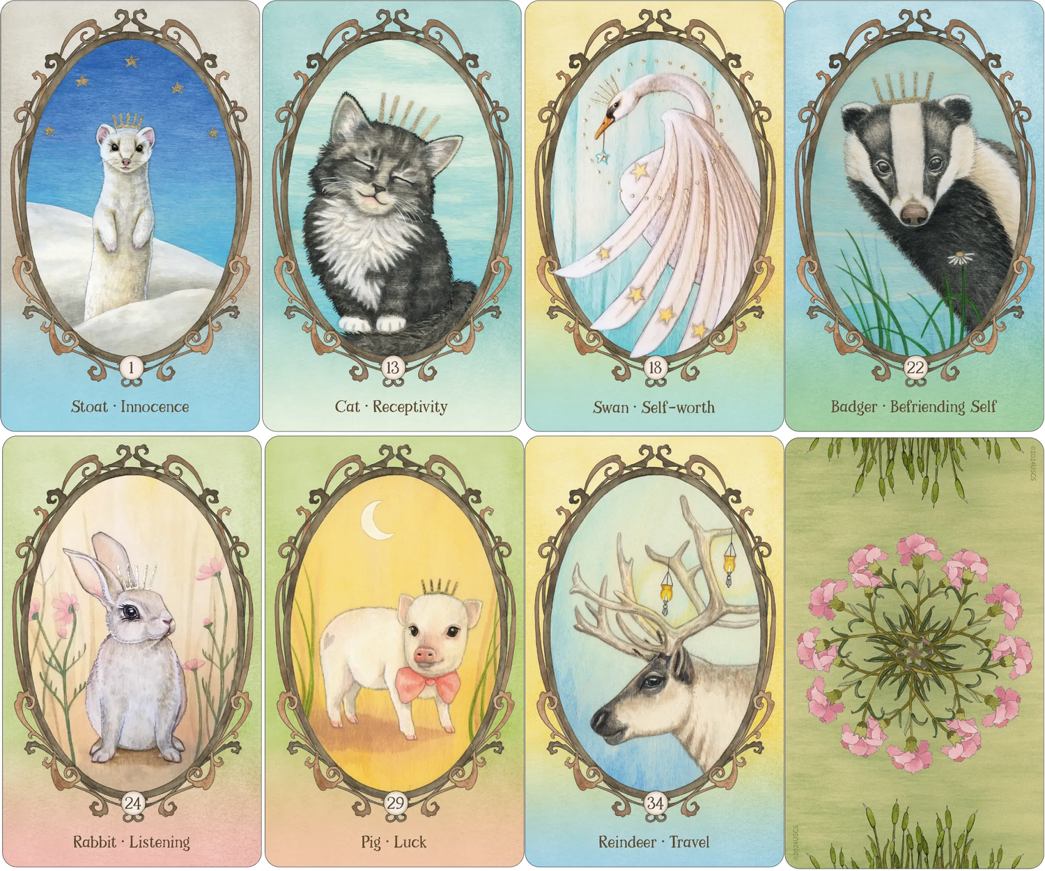 This item is required advance payment to order and estimate arrived in 3 - 10 weeks.Before our imaginations were scrubbed clean, we spent time with invisible friends, many of them in the animal kingdom. We encountered the creatures of the earth for what they truly are: Emissaries of the Marvelous. Those characters who jumped out of our storybooks, ignited our imaginations and inhabited our blanket forts were essential to our growth. They lent us strength, character, wonder and companionship. They still can. The creatures in this deck speak to your inner child and encourage your soul on its journey to a thriving, magical and empowered life. Embrace them to renew your magic. Heart to heart. Soul to soul. Hand to wing, hoof and paw. Set includes 44 purple gilt-edged oracle cards, an organza drawstring pouch, and a lushly illustrated 108-page guidebook to help you connect with the adorable animal companions.