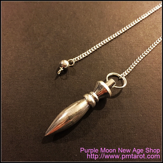 This item is required advance payment to order and estimate arrived in 3-6 weeks.These nickel plated pendulums are a beautiful and modern take on an anchient instrument of divination. They come in various shapes and sizes with a six inch chain attached, The fob at the end of the chain is a metal ball which varies in design from pendulum to pendulum.
