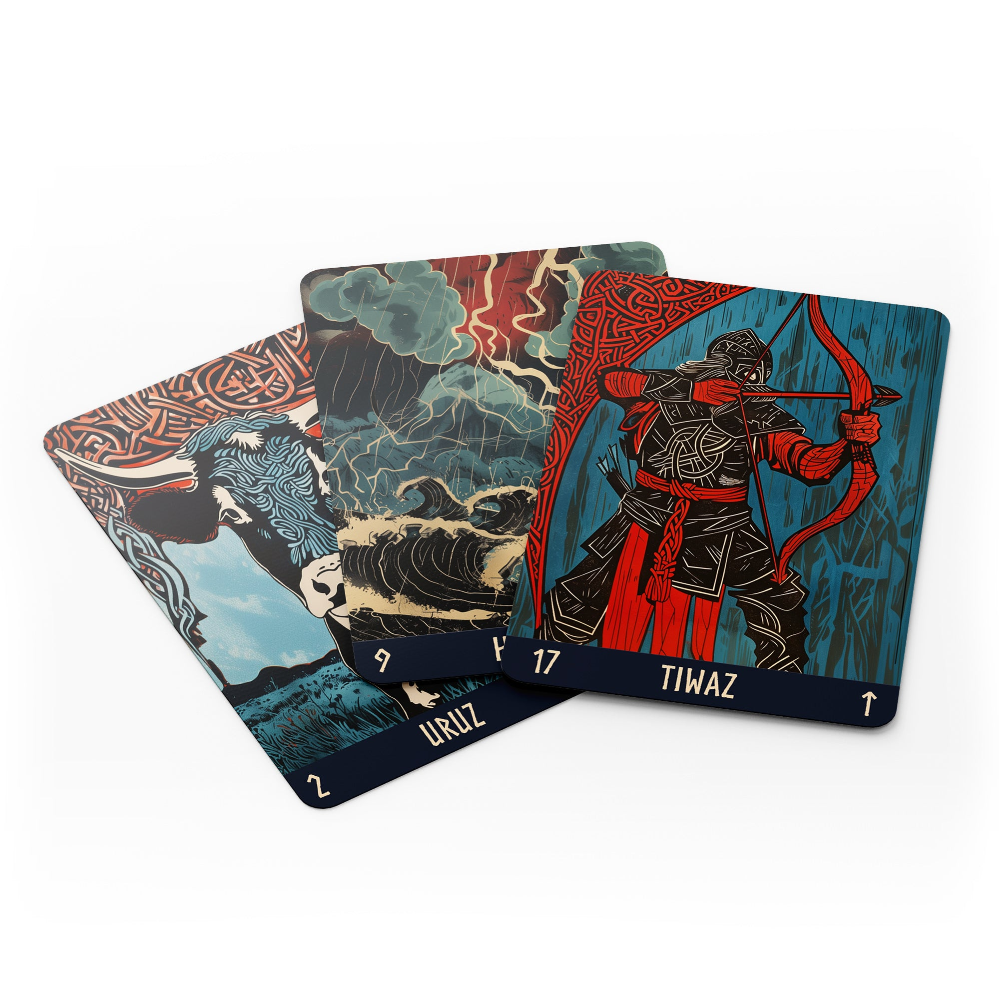 This item is required advance payment to order and estimate arrived in 3-4 weeks.Plunge into the harsh but beautiful norse world. Runes love simplicity and conciseness, which is why the deck has only three main colors - red, blue and black. A rune is not an image, it is first and foremost a symbol.