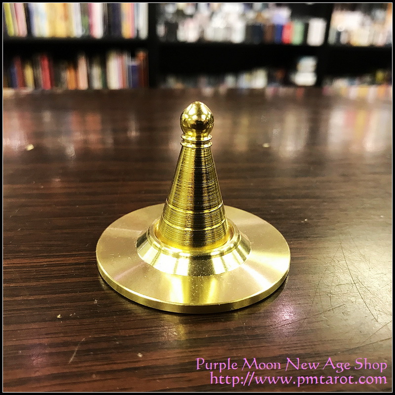 Turn the copper brass upside down, fill the cone with incense powders, use the bottom brass to cover it and then turn back to right side up. Slowly lift the brass cone up, the powder won't fall apart