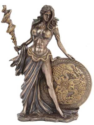 This item is required advance payment to order and estimate arrived in 4-8 weeks.The powerful prophetess and wife of Odin, Figga is shown here with a mighty staff and shield. Cold cast rresin.