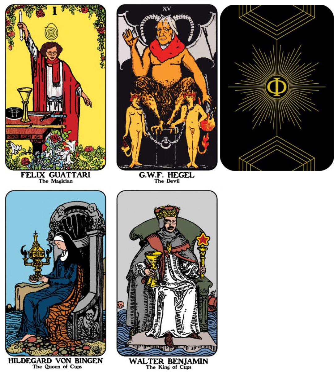 The Philosopher’s Tarot is a tarot deck which infuses the classic 78 card Rider-Waite deck with popular philosophical figures and their theoretical creativity. With added flair and vibrance, The Philosopher’s Tarot elicits a mixture of classical interpretations and philosophical inquiry. The deck comprises mashups of the 22 major arcana with famous theorists. The minor arcana has also been reworked to highlight the deck’s convergence with philosophical themes.