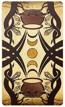 Our card backs will have two different foils - bronze and gold. The decks are coated with a protective UV spray matte finish that makes the cards easy to shuffle but not have a glare when light hits it, which can be very distracting during a reading. This also prevents the problem of the gilding and foil chipping which can be common in decks not coated with UV spray.