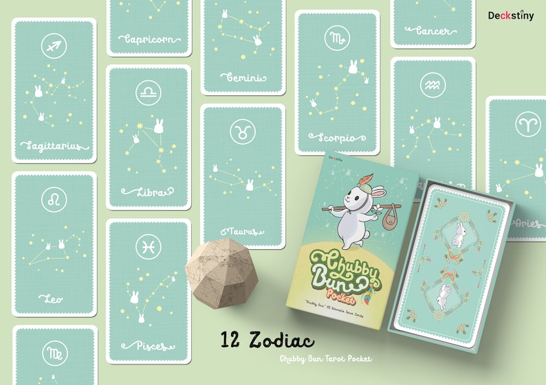 - 1 pc. 78+4pcs Chubby Bun Tarot Pocket + Special 12 Zodiac Cards
