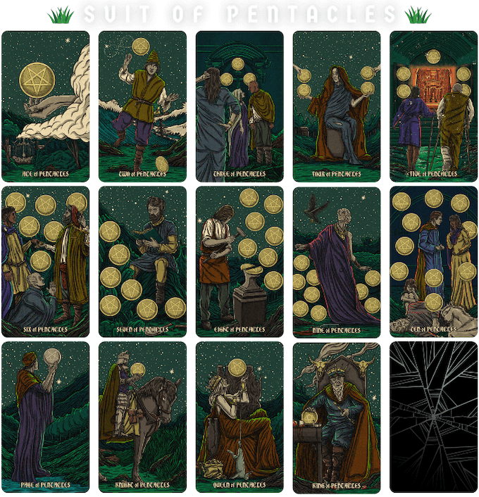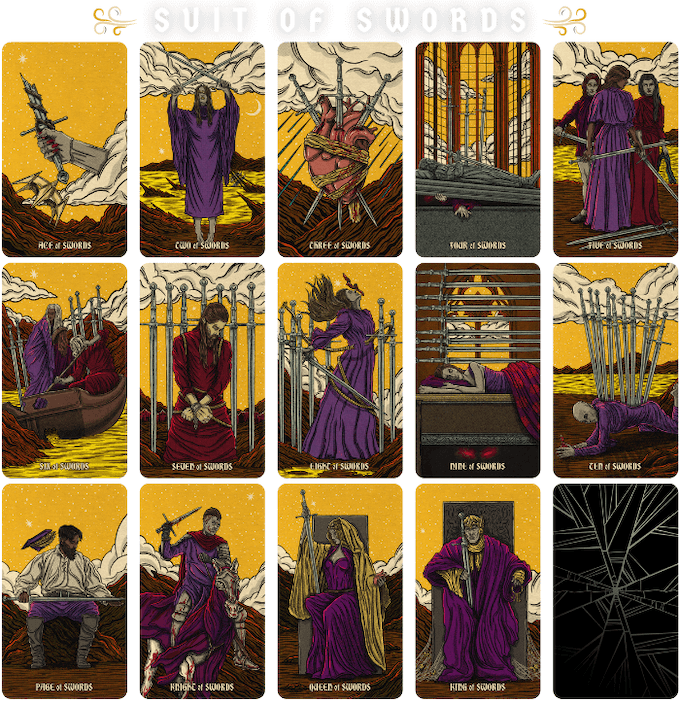 *The deck will consist of the full 22 Major Arcana and 56 Minor Arcana, broken into four suits of wands, cups, pentacles, and swords.