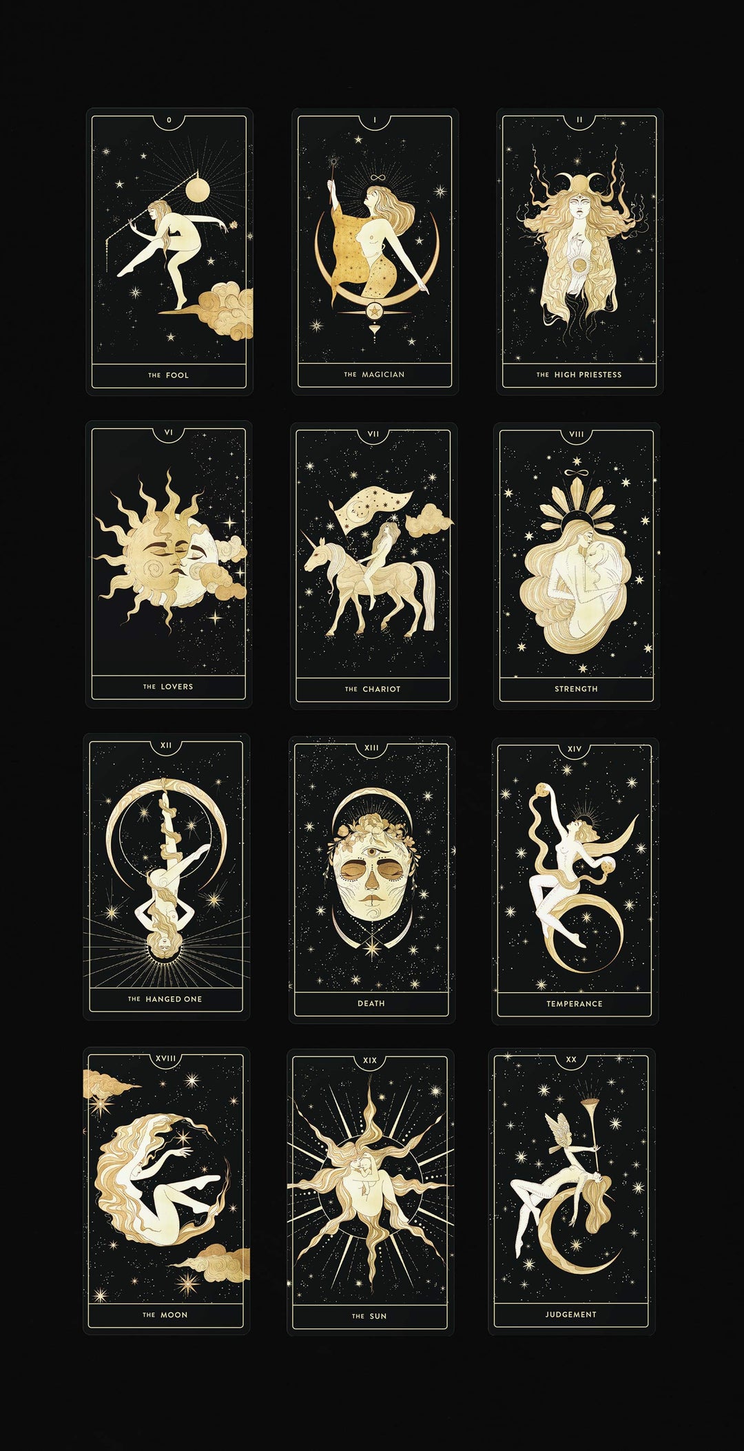 - 78 Cards (Major & Minor Arcana) with gold foil on the cards' faces