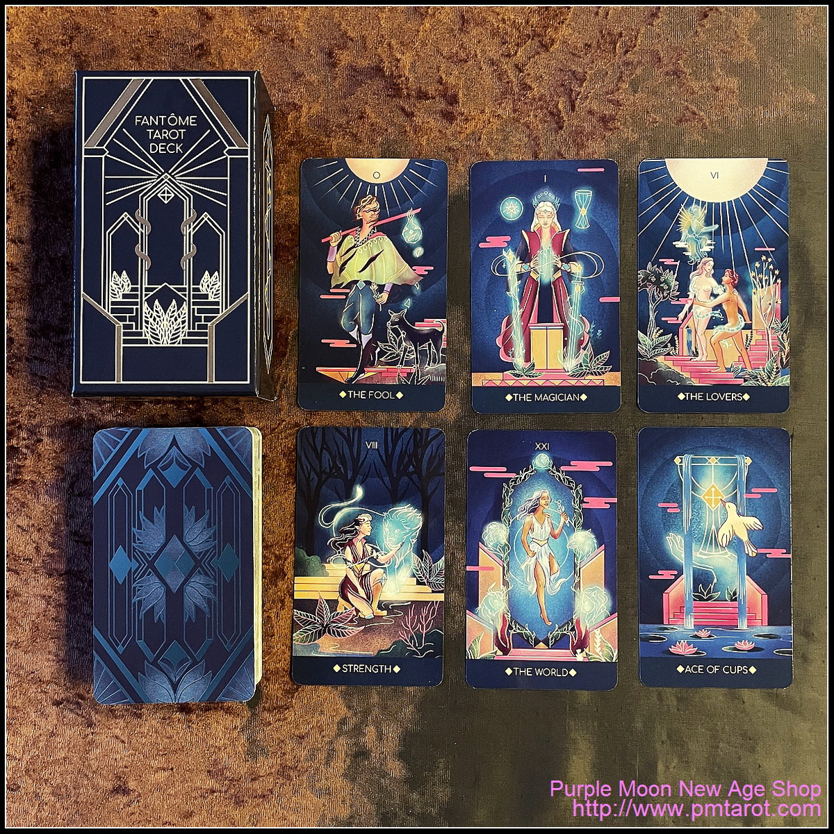 A core concept of this deck is exceptional and unparalleled quality, both in its imagery and experience as well as in its construction and manufacture. Fantome aims to set a new standard in build quality and execution. The deck will stand up to the rigors of everyday use. Cards will be made from high-quality three-layer Italian card stock. The front part of the cards contains the beautiful full-frame artwork and the backside is partially covered with gorgeous ice blue foil. It's all packed in a rigid Lid-Bottom box to keep your deck safe wherever you take it. The size of the cards is 70 mm (~2.75 inches) wide and 120 mm (~4.75 inches) tall.
