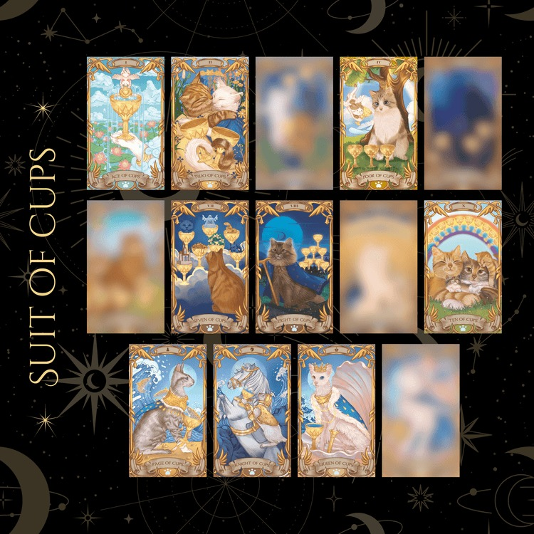 Enter the enchanting world of Nine Lives Cat Tarot and immerse yourself in the mesmerizing power of feline wisdom. This exquisite deck features beautiful artwork of cats, inspired by the traditional Rider-Waite Tarot, with each card offering a unique and enchanting interpretation of the tarot's timeless wisdom. The Nine Lives Cat Tarot comes packaged in a luxury magnetic box, providing a safe and stylish storage solution for your cards. Moreover, this divine deck includes a 170-page guidebook, filled with inspirational affirmations and profound upright and reversed interpretations of each card that will guide you in your daily life. Whether you're a seasoned spiritual seeker or a curious beginner, the Nine Lives Cat Tarot is a treasure that will unlock the mysteries of the universe and guide you towards self-discovery and transformation