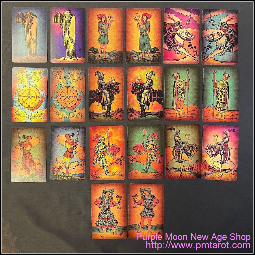Pam's Vintage Tarot is a restored edition of one of the oldest Tarot decks, illustrated by Pamela Colman Smith. It is presented to you as result of my commission work thanks to courtesy of Tarot deck collector from Australia who provided high resolution scans of the deck from her private collection. (Note: this is not the same deck as US Games or any other copyright RWS Tarot but much older first edition!) Specific modification are made with goal of creating more genuine ageless design that can’t be linked for specific geographic place, ethnicity, or time. I must say, we are all Happy seeing result; think PCS would approve too! :)