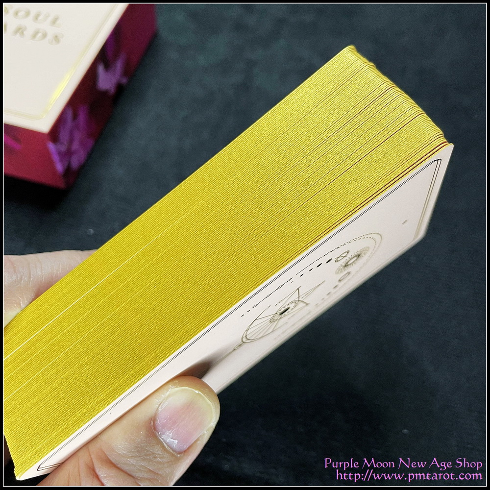 The deck is shimmering gold foiling and has a velvety smooth finish. It comes in a beautiful Soul Cards box, adding a touch of magic to your sanctuary.