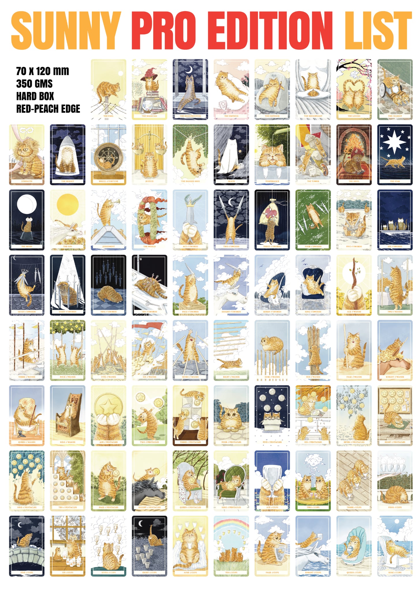 Bask in the radiant energy of the Sunny Tarot, a 78-card deck infused with the warmth, joy, and intuition of the ever-playful orange cat. Just as the sun brightens the sky, this deck illuminates your path, offering magical insights and guidance with a touch of feline charm. Each card embodies the lively and comforting spirit of an orange cat—curious, mischievous, and full of heart—making every reading feel like a warm embrace.