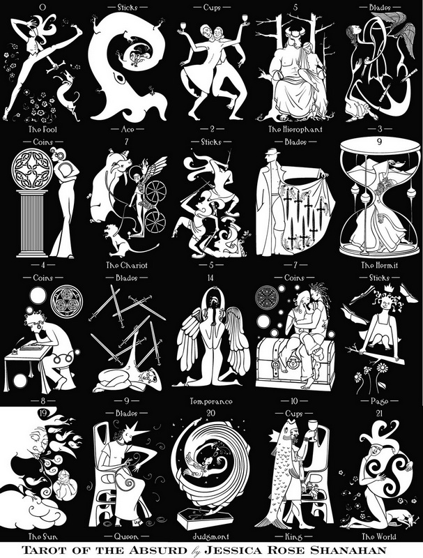 This privately published deck, printed in the USA, is limited to an edition of 600 copies, signed and numbered by the artist. The Tarot of the Absurd was voted one of the 10-best new decks of 2012 by the members of Aeclectic Tarot.