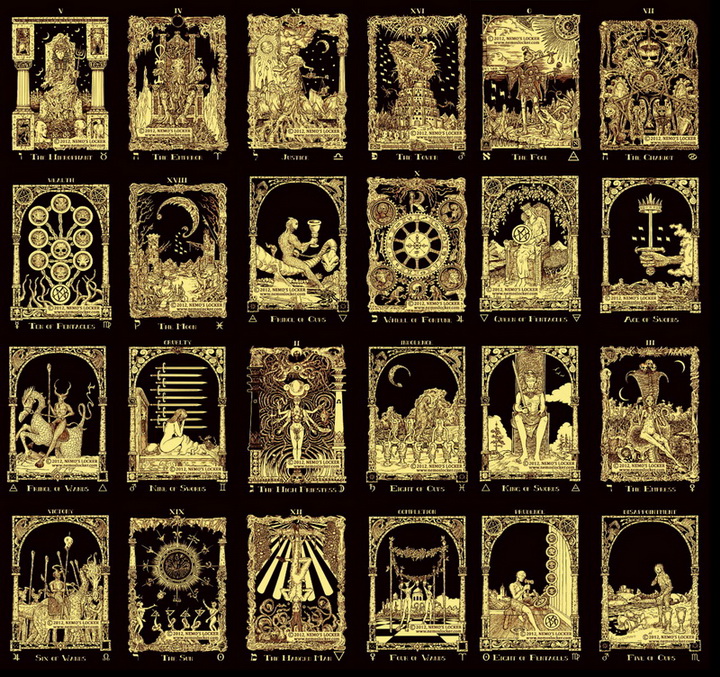 Detailed pen and ink drawings create this full 78 card Tarot deck which comes cradled snugly in a heavy lidded presentation box.