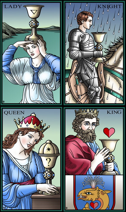 The minor suits in The Tarot of the Sevenfold Mystery related to the four elements and the pips and courts are similar in meaning to the same cards in The Alchemical Tarot.