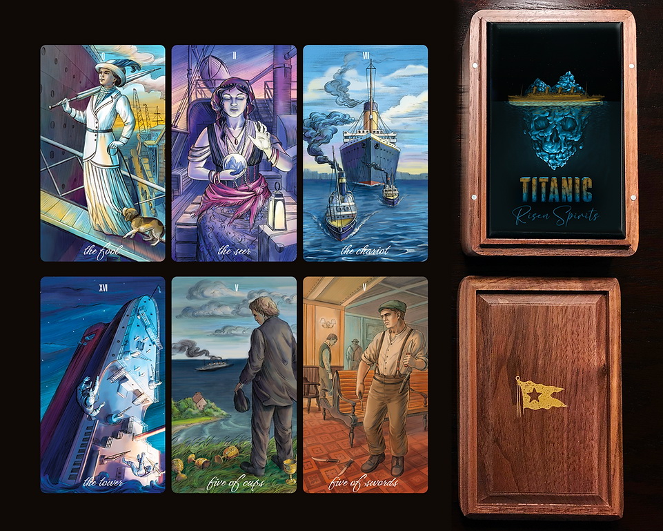 Titanic Tarot: Risen Spirits is a fully custom 78-card deck of tarot cards themed after the RMS Titanic. The tarot deck will feature life on board the ship as well as life before and after the tragic events that the ship became famous for.