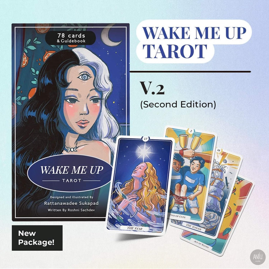 Let the playful characters and vivid colors awaken your intuition and guide you through the magical realms of divination. Wake Me Up Tarot II invites you to embrace the present moment, providing deep insights and guidance for self-discovery and transformation.