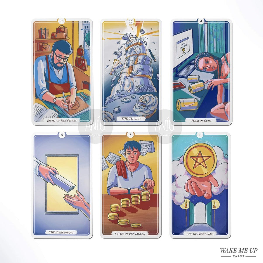 Step into a whimsical world with Wake Me Up Tarot II, a captivating 78-card deck that brings modern life's scenes to life in a vibrant cartoon style. Immerse yourself in a delightful journey where everyday moments intertwine with intuitive wisdom.