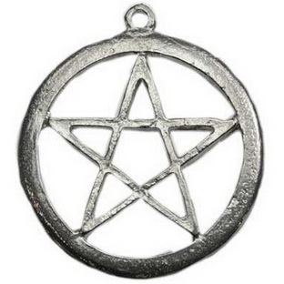This is a large unadorned pentagram, powerful in its simplicity. Pewter. Has cord
