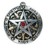 Surrounded by the five elements, written in Latin, this heraldic style Pentagram can be worn to achieve stability and inner harmony.