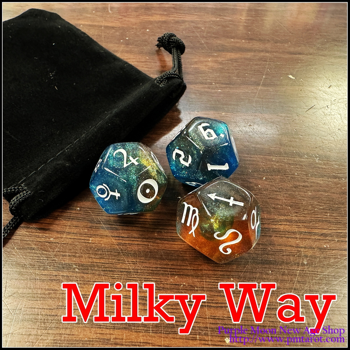包括有三粒占星骰子,一個絨袋,中文使用說明書