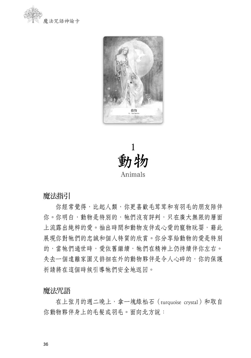 本牌卡由兩位熟悉傳統智慧及魔法的高級女祭司攜手創作,結合了自然界的神奇法則及古老的魔法之道。透過魔法工具、符號、元素與祕法,以及積極的思想和充滿意圖的詞彙,進而創造出強大的效果。