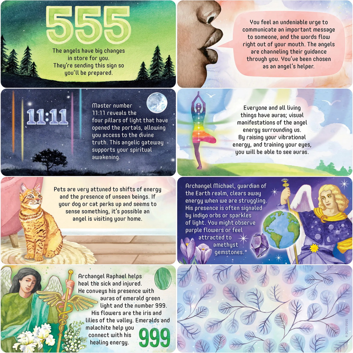 本產品需要付全數訂金訂貨,一般需時約 3 - 10 星期到貨。The Angel Connections deck provides 40 ways to recognize and interpret the signs of angels all around us, including angel numbers. Each card presents a visual image of an angel sign along with a message that guides the reader to understand and receive the angel’s blessing. Deck includes 6 cards identifying archangels and the ways they communicate their presence.