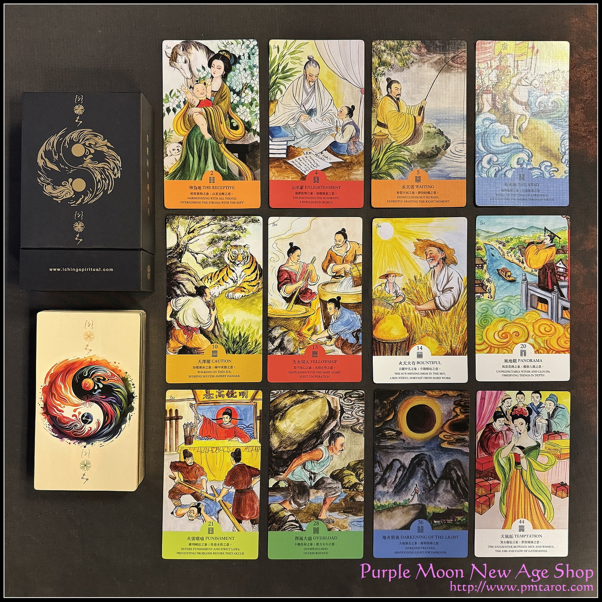 這套64卦的易經牌可用來諮詢事情由每日到一年內的。