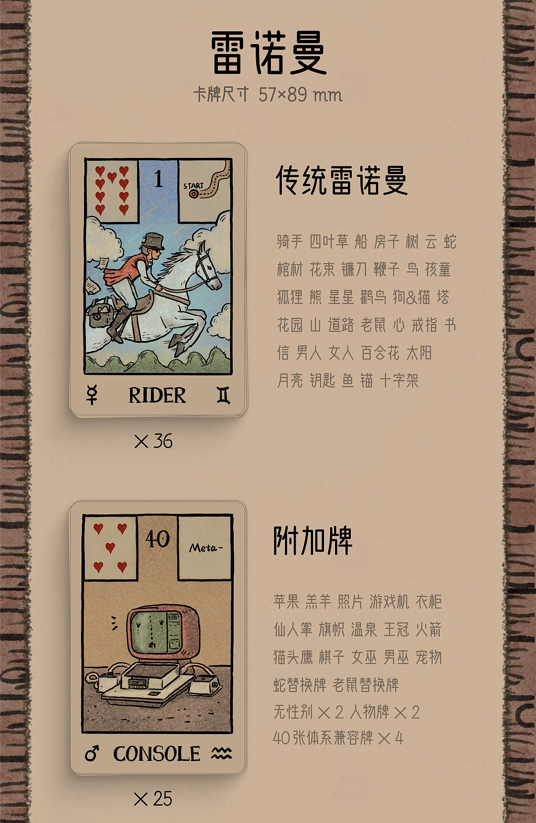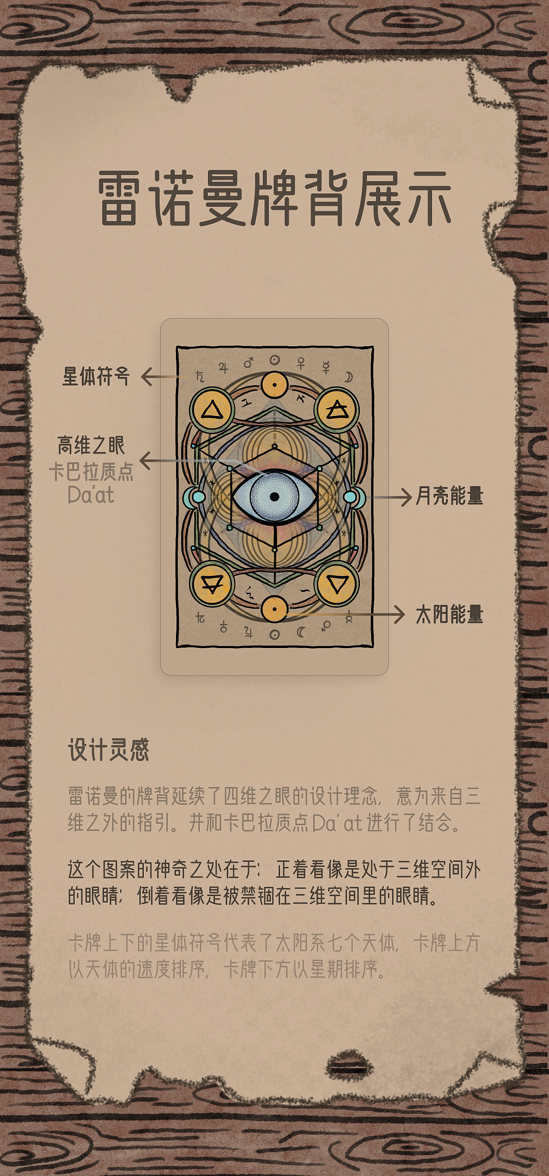 卡牌和手冊添加了許多符號,畫面象徵;每張牌也標注了星體符號,方便查找