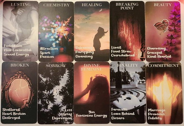 There is no handbook and you will rely solely on intuition. Each card indicates 3 keywords in relation to the main topic of the card and energy.