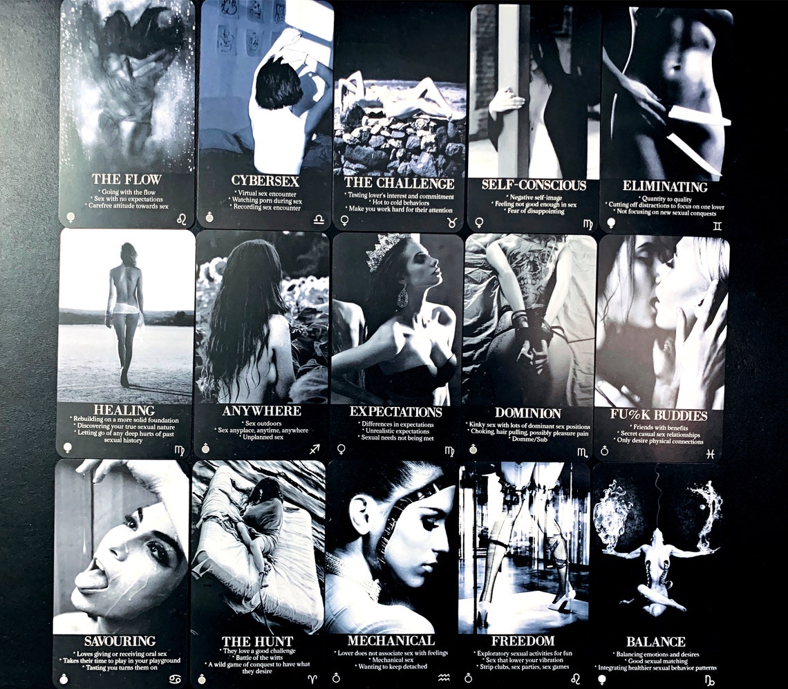 These oracle cards are useful for any type of sexual intimate connection. The intention behind these cards is to unravel the fantasies, intentions, type of lover they might be and how they will connect with you sexually. When I created these cards, I had the overall intention to target those of you who are struggling to understand someone in a sexual connection, wanting to know what fantasies they might have towards you, how to improve your sex life, or how your sex life would be with your romantic interest in general. Please note these cards are blunt and honest, they are not light and fluffy, as with many divination cards, foretelling that someone may possibly be engaging in sneaky behavior or distancing themselves from you. There are, of course, also cards that showcase someone's loyalty, love and devotion. If you are someone who can be triggered or looking for the positive meanings only, these are not for you.