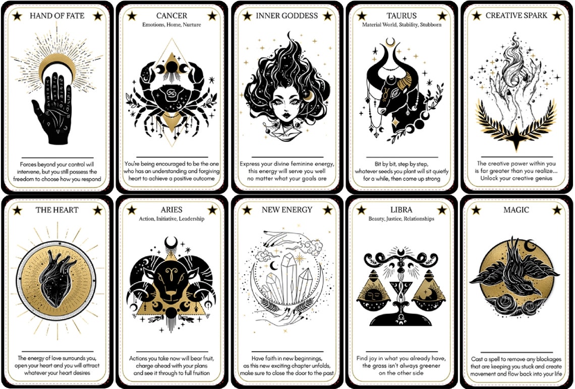 Can be used in conjunction with tarot cards, other oracle decks or simply on their own.
