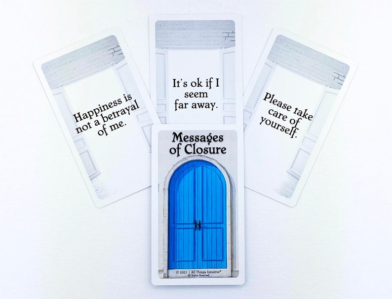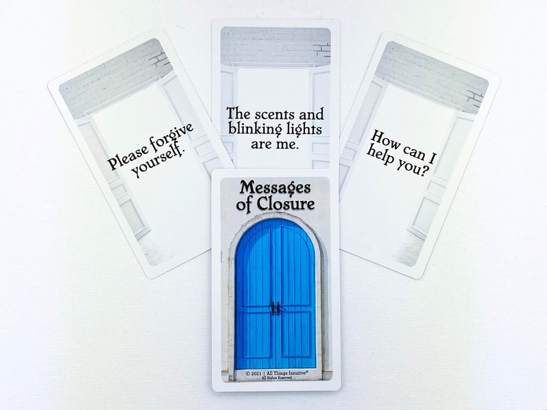 Need a message from a departed loved one? Messages of Closure © is a 54-card oracle deck created for those who have unfinished business with someone who has left or has passed away. The person might have been a spouse or significant other, a parent or grandparent, a friend, or anyone. This oracle card deck can help provide the answers you seek, especially if the relationship was difficult.